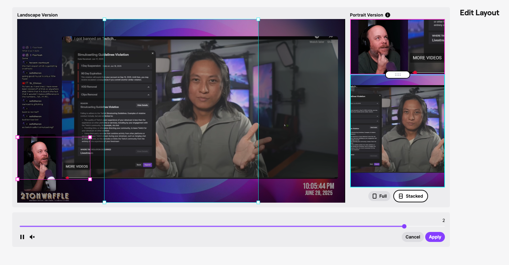 This could be something down the line but, in creating clips let include the option of a vertical clip creation as an option. I'll include an example from Twitch of this as they've recently released the ability to do this.